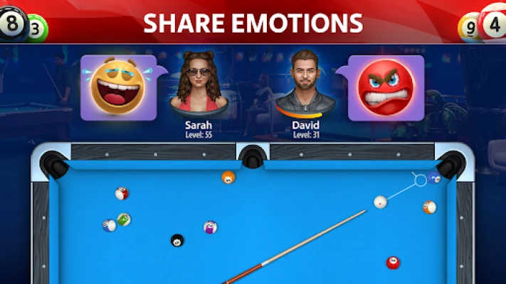• SHARE YOUR EMOTIONS—Have even more fun at the pool tables with our convenient instant in-game messenger and animated emojis. Show your mood to your 8 Ball opponents!