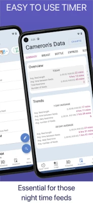 √ Easy to read charts displaying analyzed data, as well as a timeline view so you can see emerging trends, such as baby feeding at the same time every day. This also helps to show days when baby is acting differently such as more dirty diapers than usual.
