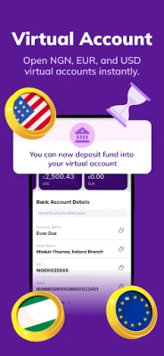 • Receive money with USD Virtual Accounts: Get a USD virtual account to receive payments from freelance platforms, employers, friends, and more.