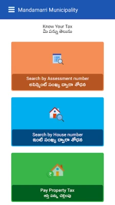 Citizen Services Mobile app for Mandamarri Municipality Citizens. Citizens can Know and pay their Property Tax, Water Tax and Register complaints, Grievances and get them resolved. App also works as bridge between Citizens of Town and Urban Local Body App is developed under the guidance of Commissioner and Director for Municipal Administration (CDMA), Telangana State
