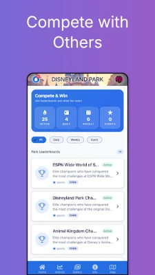 Unlike standard theme park apps focused only on wait times or reservations, Park Pursuit gamifies your entire visit. Every step matters, every ride counts, and every challenge completed adds to your theme park legacy.